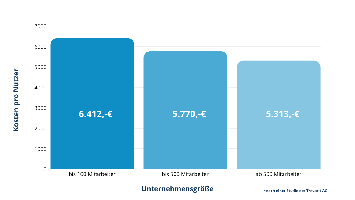 In der Studie fand man dabei heraus, dass die Gesamtkosten einer ERP-Implementierung bei circa 5.917 Euro pro Arbeitsplatz liegen.